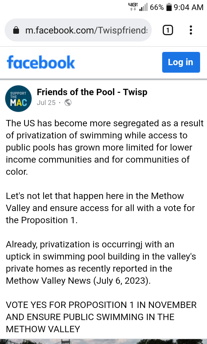 The original post also included language that had the appearance that somehow MVCC was working in collaboration with and in support of the FOP Aquatics Center proposition 1 which, if passed by voters in November , would create a very powerful non voter accountable Metropolitan Park District.