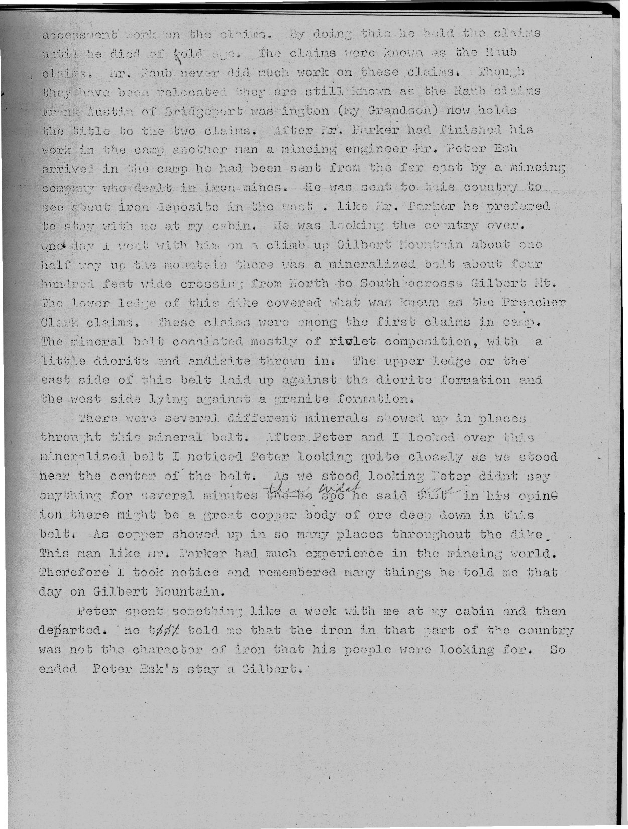 BAK COUNTRY MINES by Harvey Austin This is the diary Harvey kept as he worked the mines at the end of Twisp River Road.