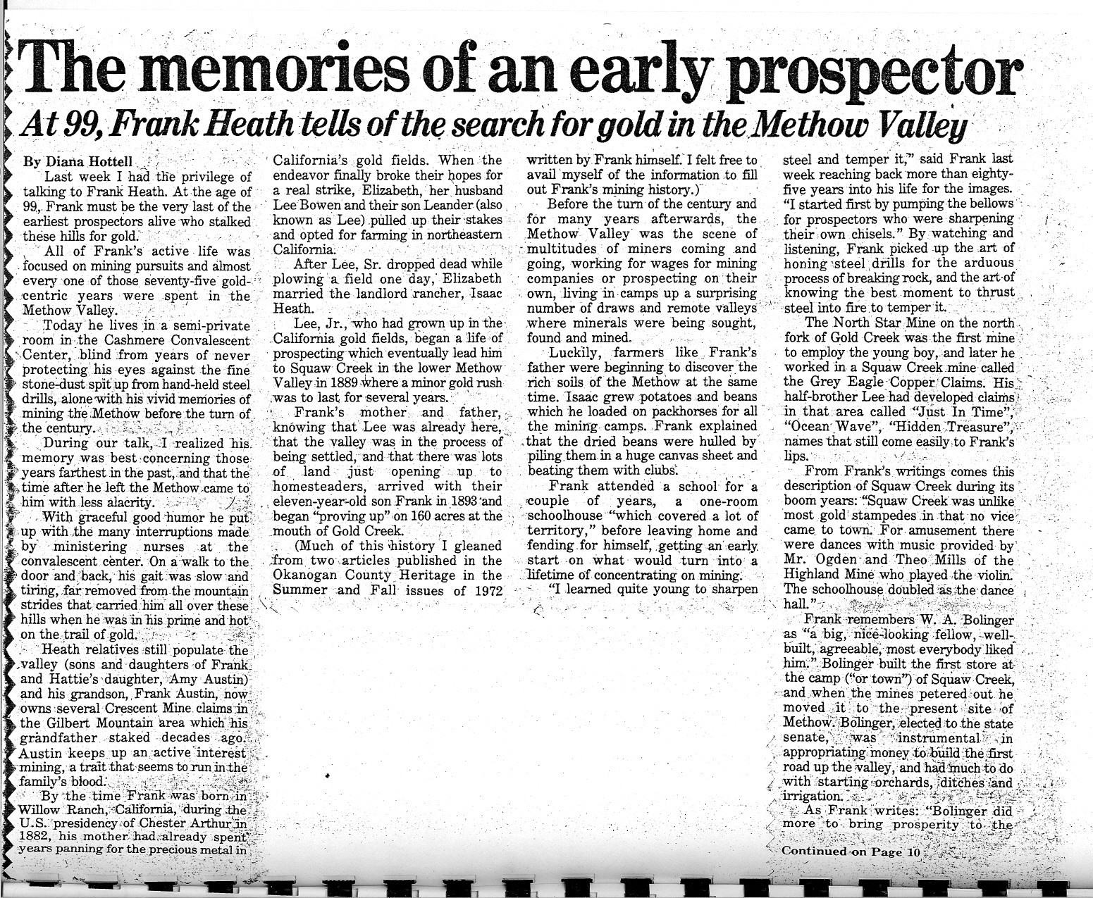 GOLD by FRANK HEATH FRANK Austin gave me the duty of preserving his grampa's book. This book documents the gold rush of the Methow Valley.