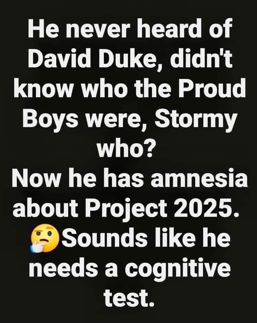 Ken, your word salads are approaching Trump's level. I'm so sorry you've given up on laughter. But then DonOld has instructed his MAGAs not to laugh because it's a sign of weakness so it makes sense that you're intimidated by Kamala Harris.