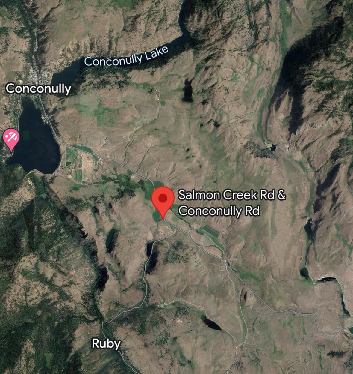 The fire has burned from Salmon Creek Road to Conconully Dam.