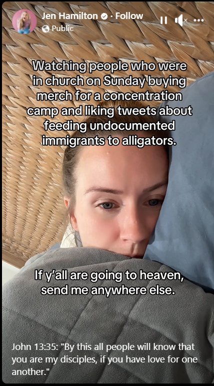 I am heartbroken and deeply embarrassed to be associated in any way with a geography, group, or community that could find joy, pride, or satisfaction in the thought of alligators tearing apart human lives. The mere idea that such suffering could be celebrated or justified grieves my heart. I can’t help but wonder how many of those being held in “Alligator Alcatraz” are actually heirs to salvation and the Kingdom of God?