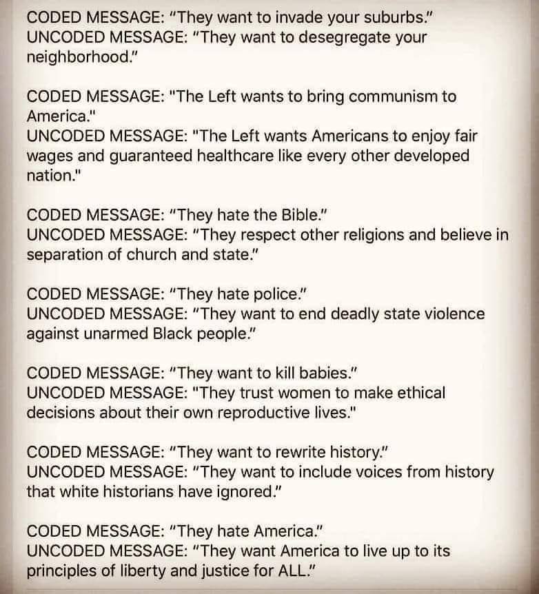 Trumpsters send out many messages regarding the left... Sometimes they need to be uncoded...