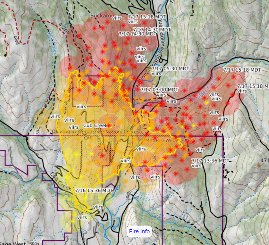 Cub Creek 2 - Cedar Creek firefighting resources were diverted to assist in initial attack of a new fire start in the Chewuch River area yesterday. Cub Creek 2 Fire grew quickly and was last reported from the infra-red flight at midnight as 1,528 acres. Evacuations are in effect. See the Okanogan County Emergency Management Facebook page for the most up to date levels and information. Forest Service Campgrounds have been swept and closed along the river drainage. The fire is burning on Washington Department of Natural Resource and Okanogan County Fire District 6 protected lands and also the Okanogan-Wenatchee National Forest. Type 3 IC Chad Schmidt will manage the Cub Creek 2 Fire today and tonight management will transfer to Northwest Incident Management Team 8. Two divisions have been created for suppression actions. The Washington State structure strike team has been reassigned to protect properties in the new Cub Creek 2 Fire. 8 Mile Ranch is the designated staging area.