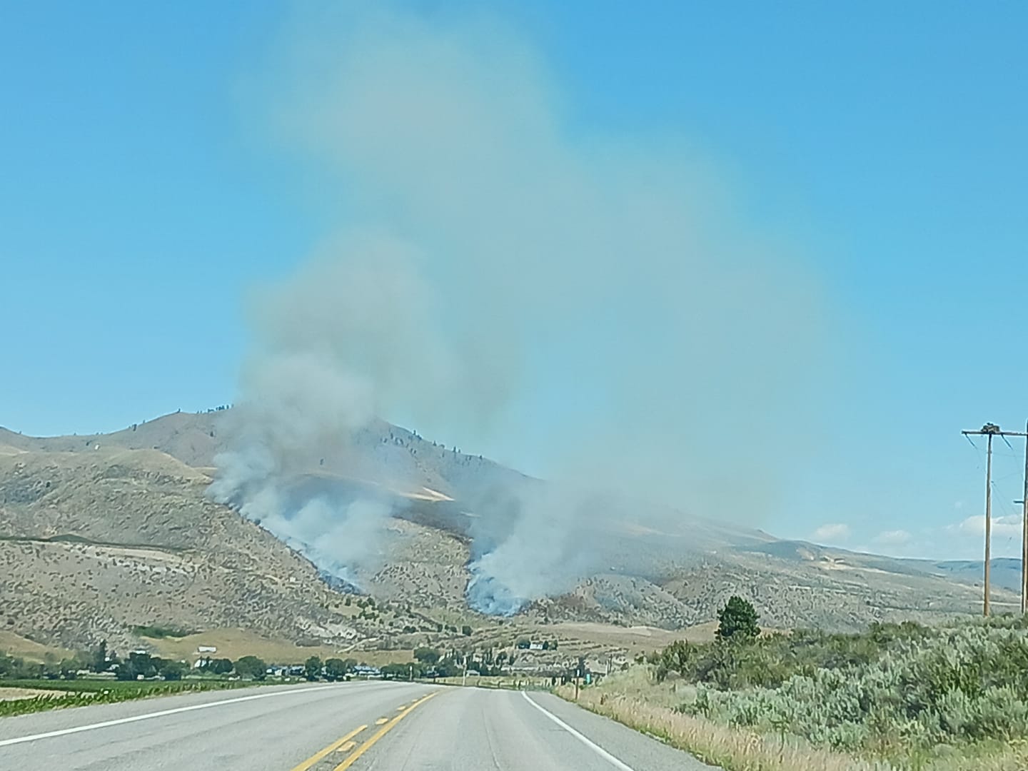 Fire in Stayman Flats area south of Chelan. Fire personnel have responded. First 2 photos courtesy of Gabriella Davila, photo shot from Manson provided by Kari Volyn Axtman and photo from Highway 97-A sent by Whitney Kirby.
