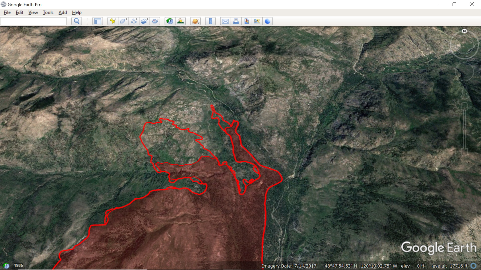 All current wildfires (larger filesize - 12.8 mb)... Previous perimeter files were selected for Methow Valley and small filesize