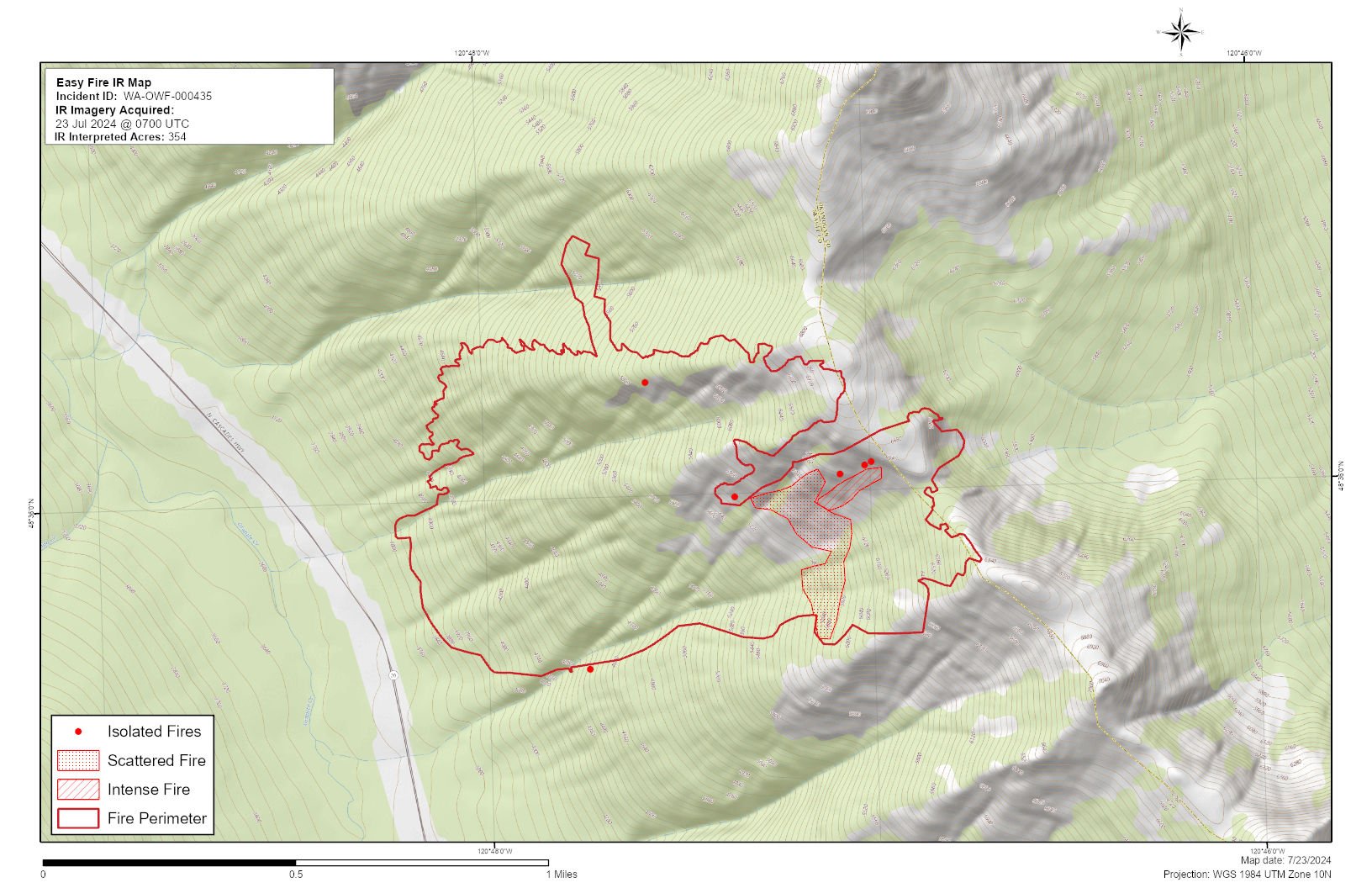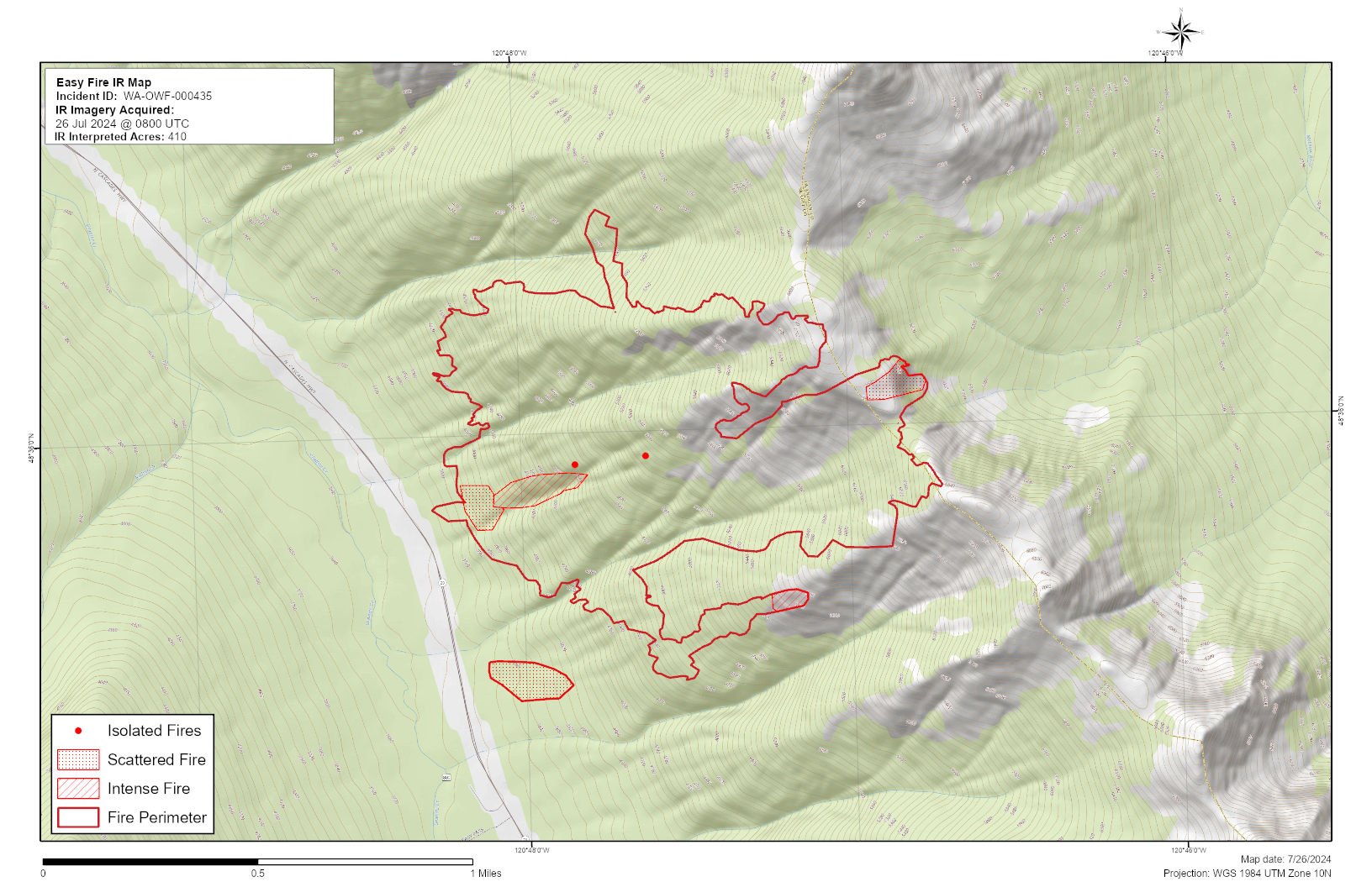 CURRENT SITUATION: Easy Fire is burning in dense timber and extremely steep terrain. The fire is backing and flanking with short upslope runs, single tree torching, and short-range spotting. The steep slopes with continuous timber contribute to difficulty with fire suppression. Easy fire is a full suppression fire and firefighters are utilizing strategies and tactics that provide the highest likelihood for success while mitigating risks to firefighters and the public. The Easy Fire extends over Mt. Hardy, threatening the Pacific Crest Trail, while also moving down slope toward State Route 20 (SR 20) North Cascades Highway.