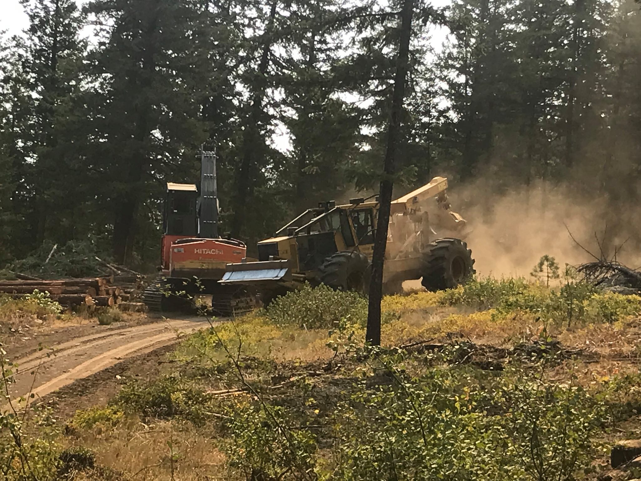 Here's some good video of a timber processor/harvester working. It's the same machinery that's been working all day in Division M and P (see post before this). A timber processor/harvester cuts trees, then strips off the branches with rollers and stacks them. Video credit: Travis Thane