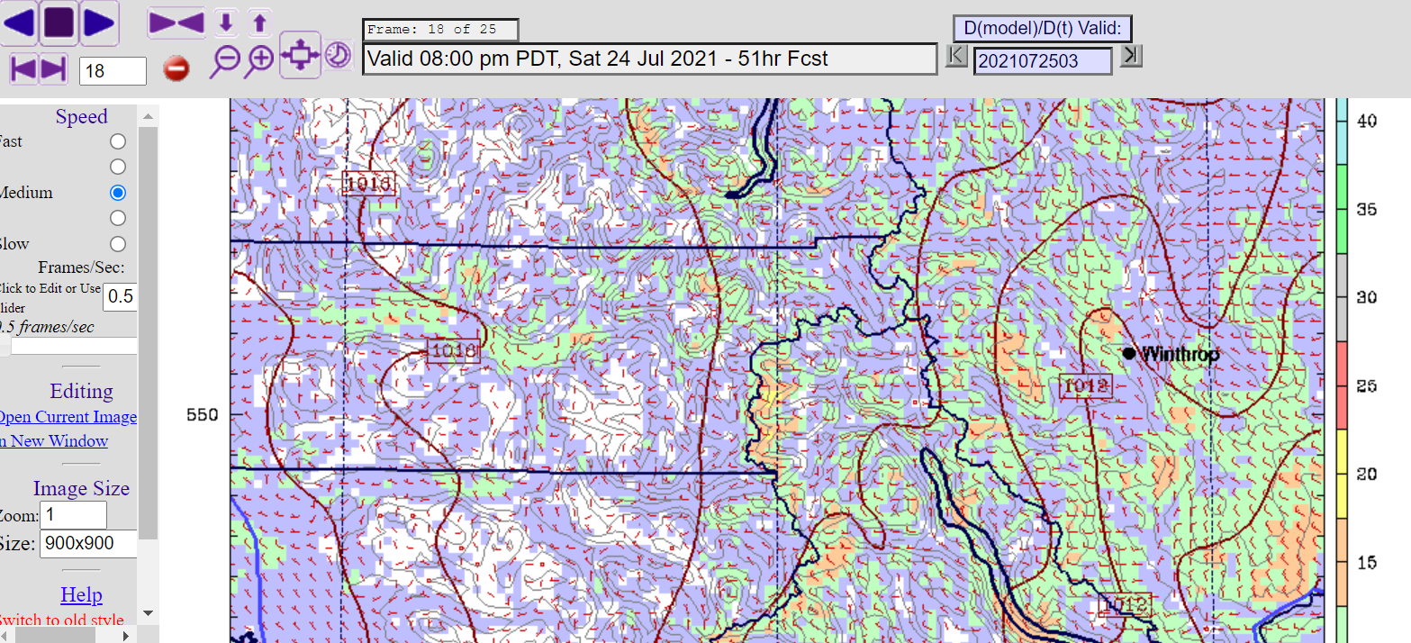 UW Atmospheric Sciences 72 hours wind speed and direction forecast model for north central WA...