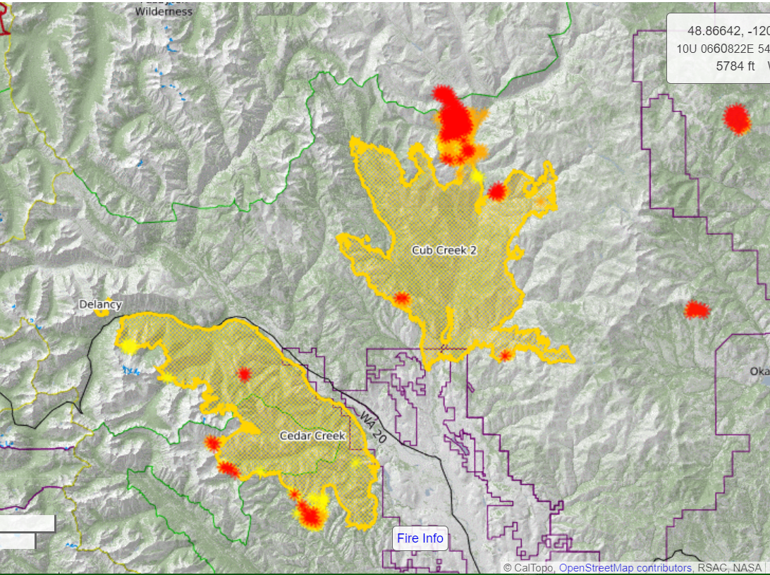 Fire Information Line: Cedar Creek and Delancy Fires: 509-557-0740 (8:00 am to 8:00 pm)