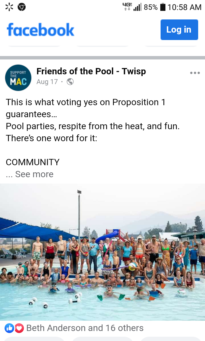 The fact is that Proposition 1 has nothing to do with building a mega spa pool. Twisp already has a pool that has received close to a half a million dollars in improvements and maintenance.