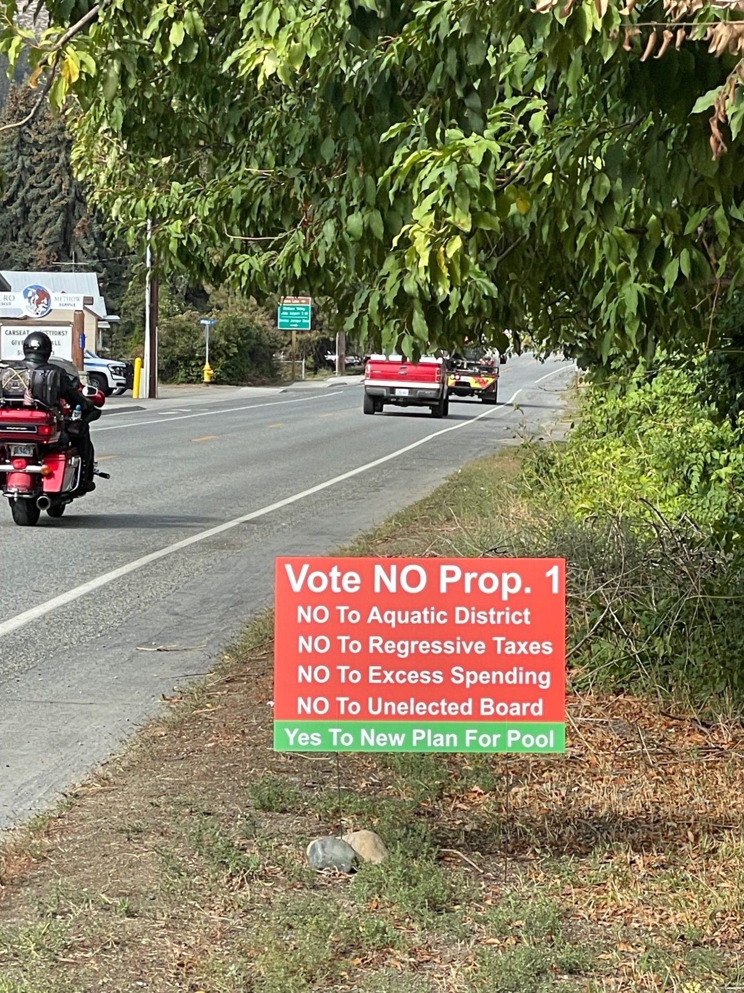 OK... since we are out of signs and some are disappearing... I made an order for 8 more for a final blitz of advertising... These will come without the original flimsy mounting stakes and should be posted with lite weight t-posts or suitable stakes and bailing wire. They will arrive around Oct 11th (pamphlets come out the 13th, ballots the 20th) while I am on vacation, but I will have them picked up by a contact that can distribute them. I return the 15th.