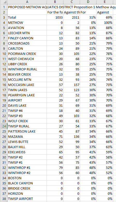 The Hospital Proposition 1... Some precincts approved the Proposition, but only 3 over the required 60% threshhold...