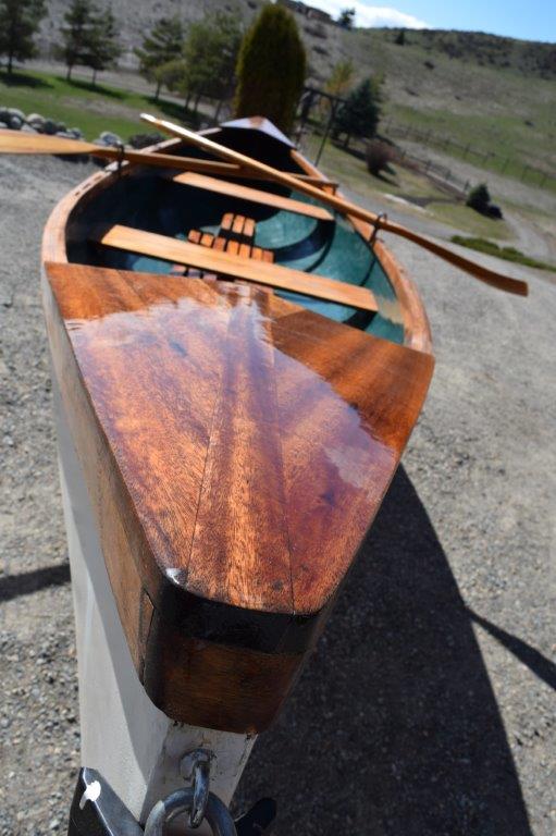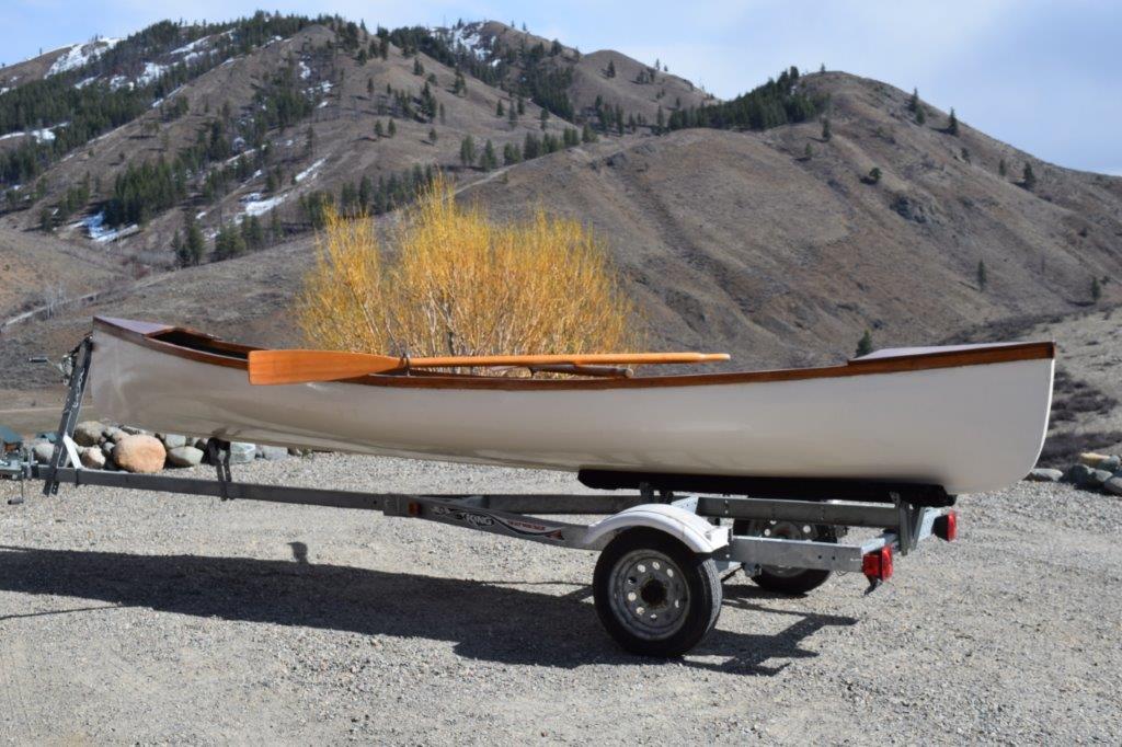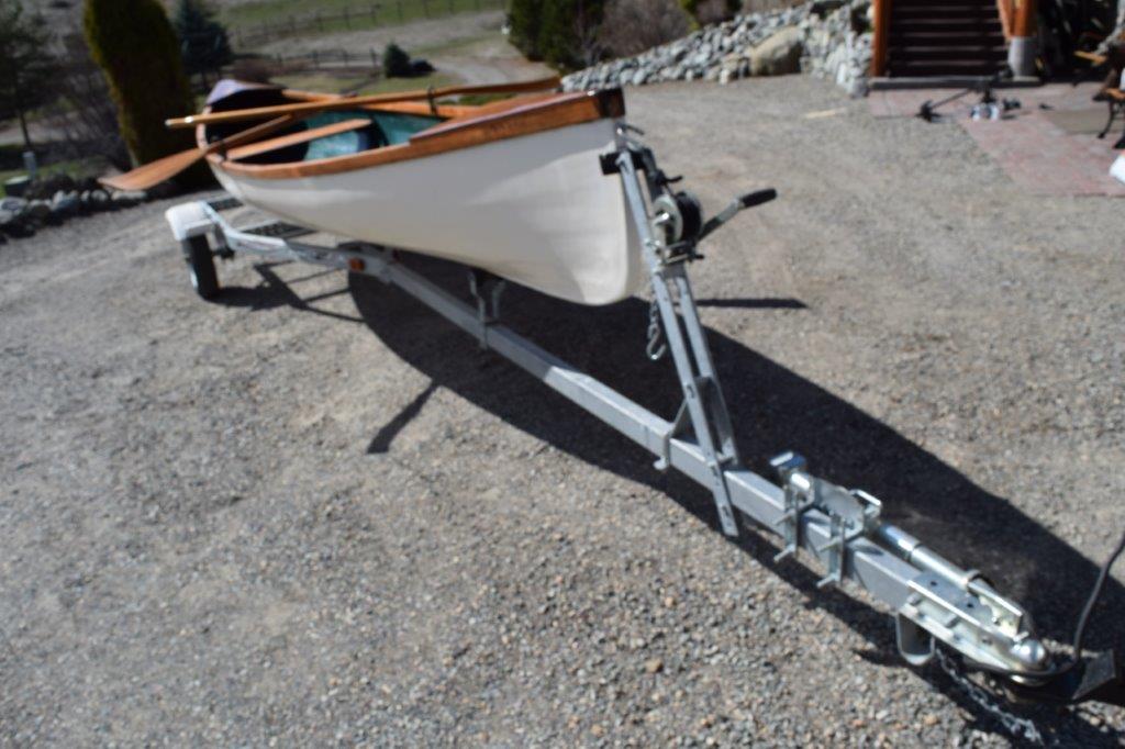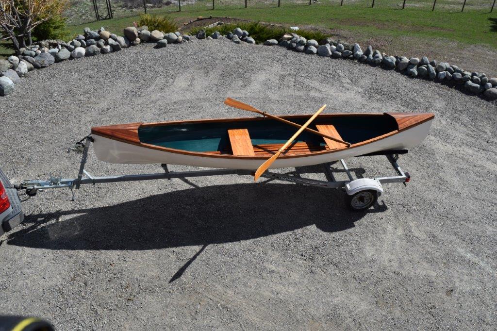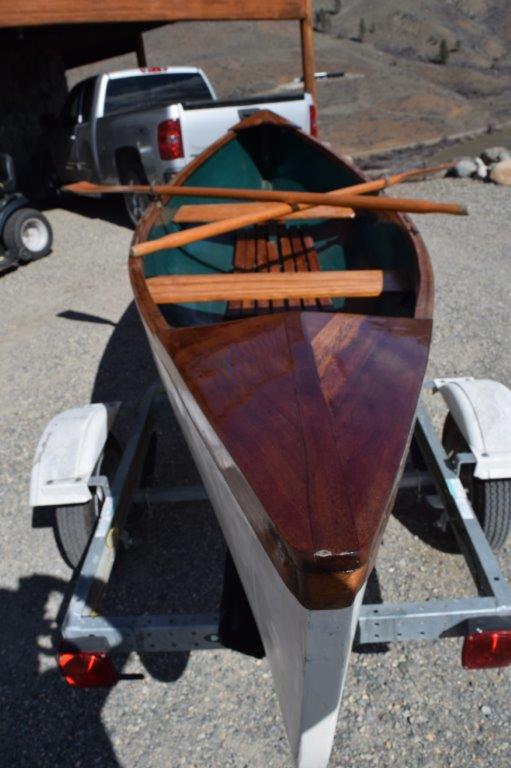 1. 17 ft. custom rowing canoe with two seats, Hand built of strip cedar and laminated with fiber glass. Natural wood trim and seats with marine grade paint and clear coat. Very solid, safe and fast to row. One flick of the oars and she moves along pretty quickly. The original design was for transporting the captain and crew to and from the ship at anchor in New England. It has become very popular in the islands, lakes and the Oregon Coast.