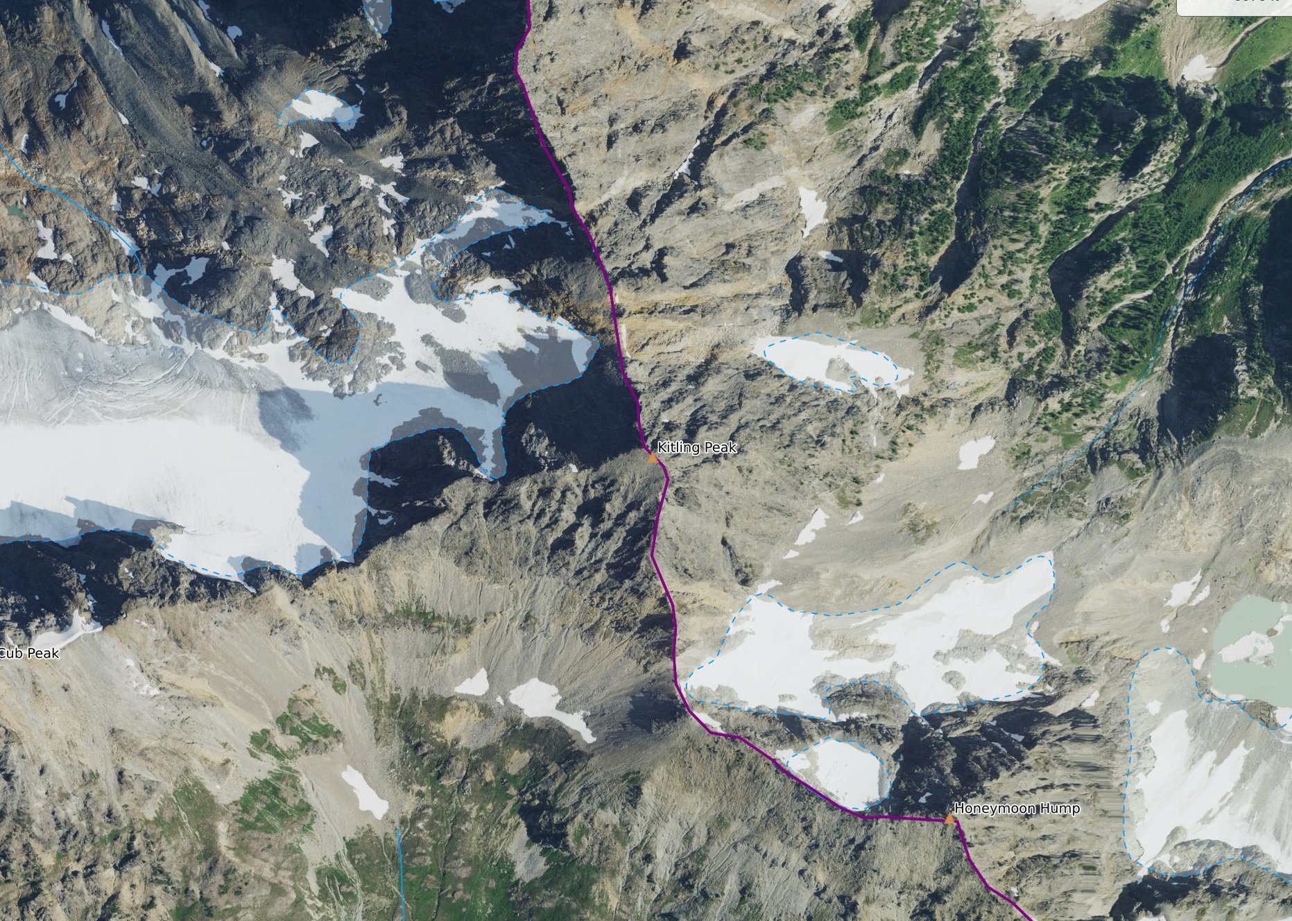 I think Kitling Peak is to the N of McGregor Mountain? If that is the case it is a distinctly difficult place to get to in the North Cascades...