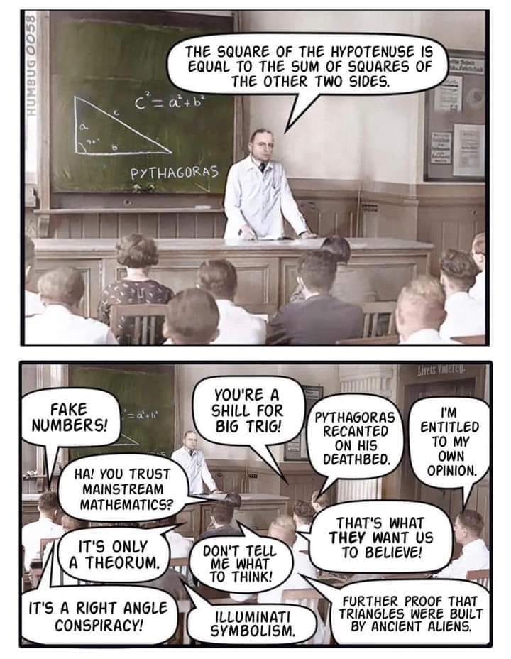 ‘When you are too illiterate, under-educated - or just too f+cken stoooopid and/or willingly and deliberately stubborn - to understand basic science, health, history and logic….then of course everything does, indeed, look like a conspiracy’.