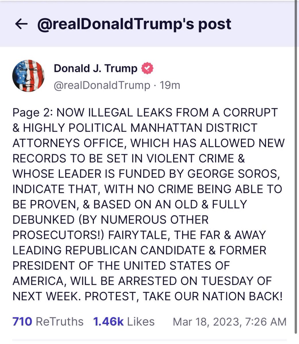 Re: Trump expects to be arrested next week